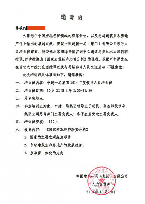• 北京四海昌信咨询中心专家为中国建筑一局有限公司解读国家宏观经济形势